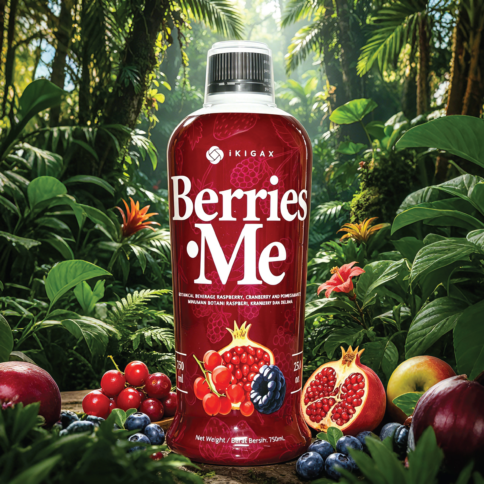 BERRIES ME 精选全球21种天然浆果与功能性植萃,包含蓝莓、蔓越莓、葡萄籽、巴西莓、接骨木莓、余甘子、山竹果、石榴、小番茄等,富含天然维生素C、多酚类、花青素与植化素。